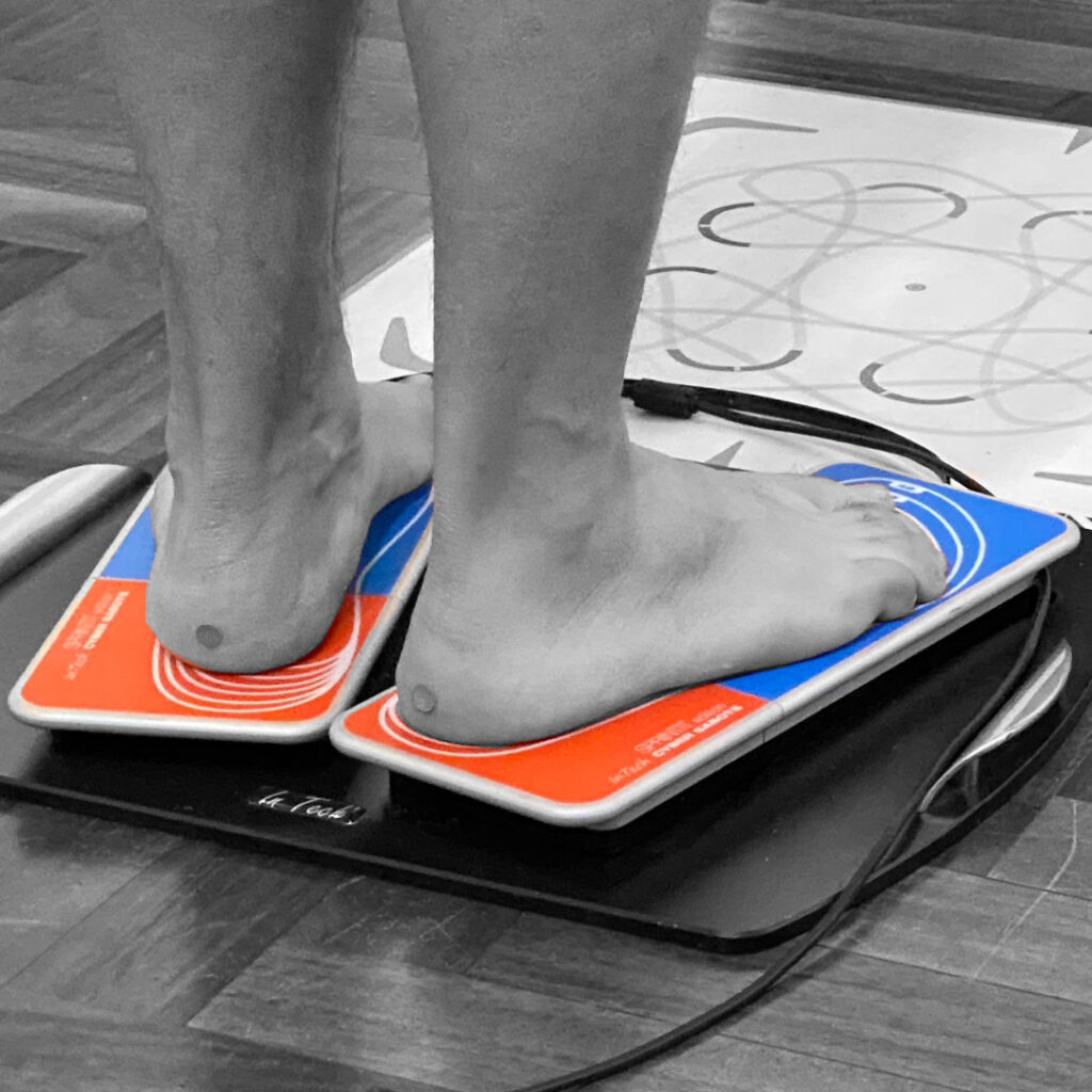 Se necessario, viene effettuata anche la prova stimoli: piccoli microrilievi posizionati sotto i piedi consentono di osservare in tempo reale come cambia l’organizzazione posturale e di capire se possono essere indicate solette propriocettive personalizzate.